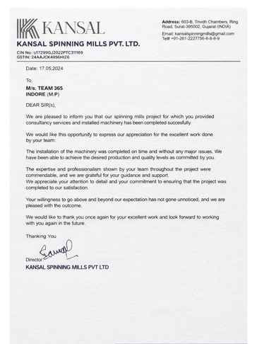 TEAM 365 was founded in 2005 by textile professionals with extensive corporate and project management experience. As a leading consultancy firm, TEAM 365 specializes in providing comprehensive project management and coordination services tailored for spinning mills and spinning projects. We also offer erection services, technical audits, and maintenance services, making us a one-stop solution for all technical needs in the textile industry, particularly for profitable spinning mills.